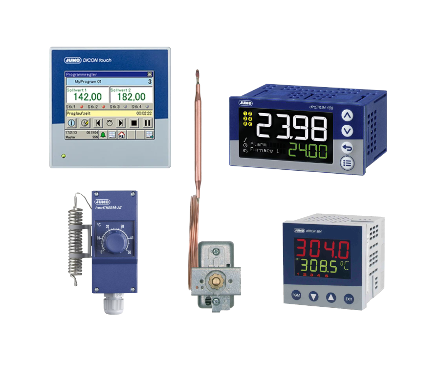 Different industries may have vastly different production processes, but they all need to control process variables such as temperature, pressure, humidity, flow, and level, and many cases require the highest levels of accuracy. JUMO’s product range spans from inexpensive electromechanical and electronic thermostats through to compact PID controllers and multichannel automation systems.